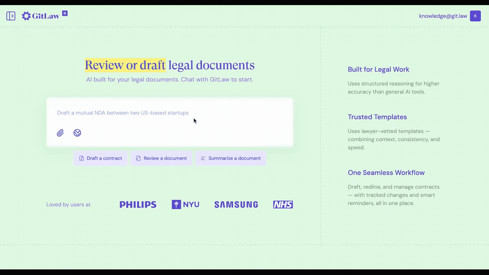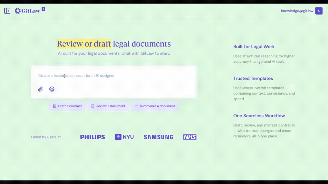 GitLaw combines lawyer‑vetted templates with an AI agent that can draft or review legal documents based on plain‑language instructions.